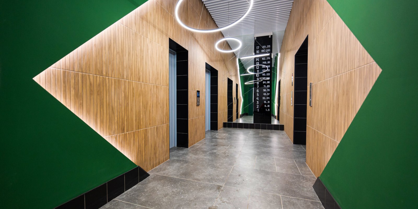 Перекликающееся с фасадами оформление холла, высокие потолки, большая зона отдыха и приветливый консьерж уже при входе в ЖК будут создавать уют и комфортную атмосферу вашего дома