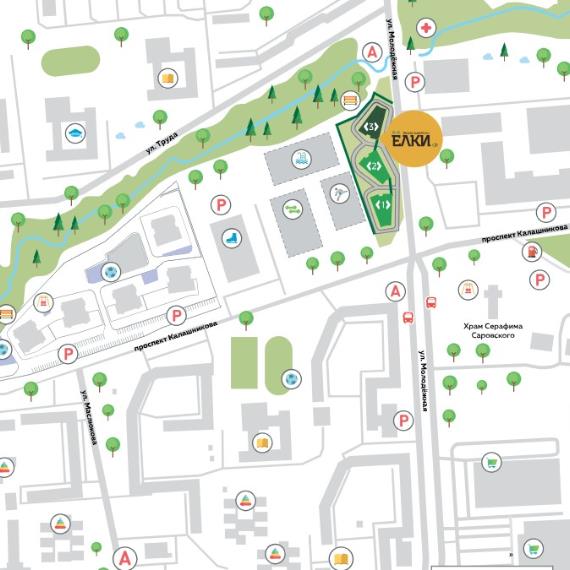 Жилой комплекс "Ёлки" находится в динамично развивающемся районе с удобной транспортной доступностью и развитой инфраструктурой. В десяти минутах ходьбы парк, спортивный клуб, остановки общественного транспорта, торговые центры, салоны красоты, автосервисы, магазины.