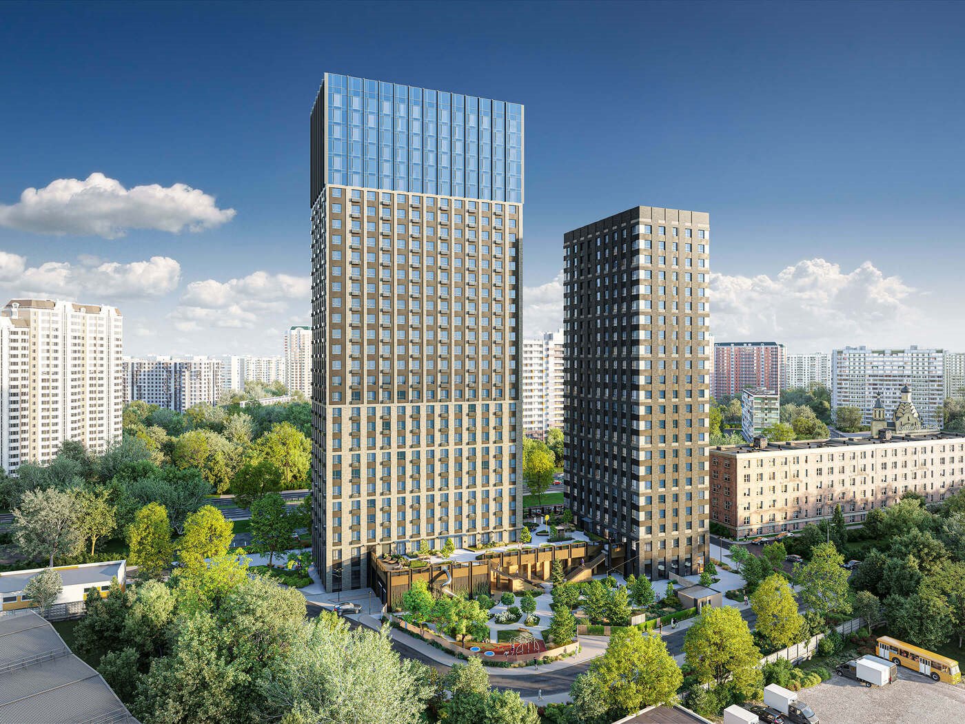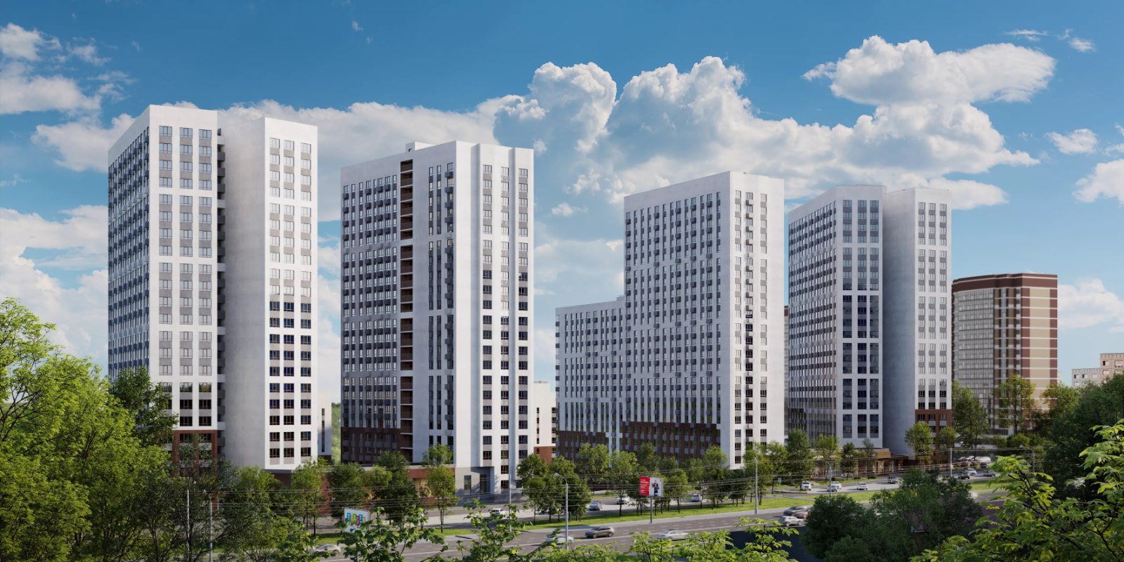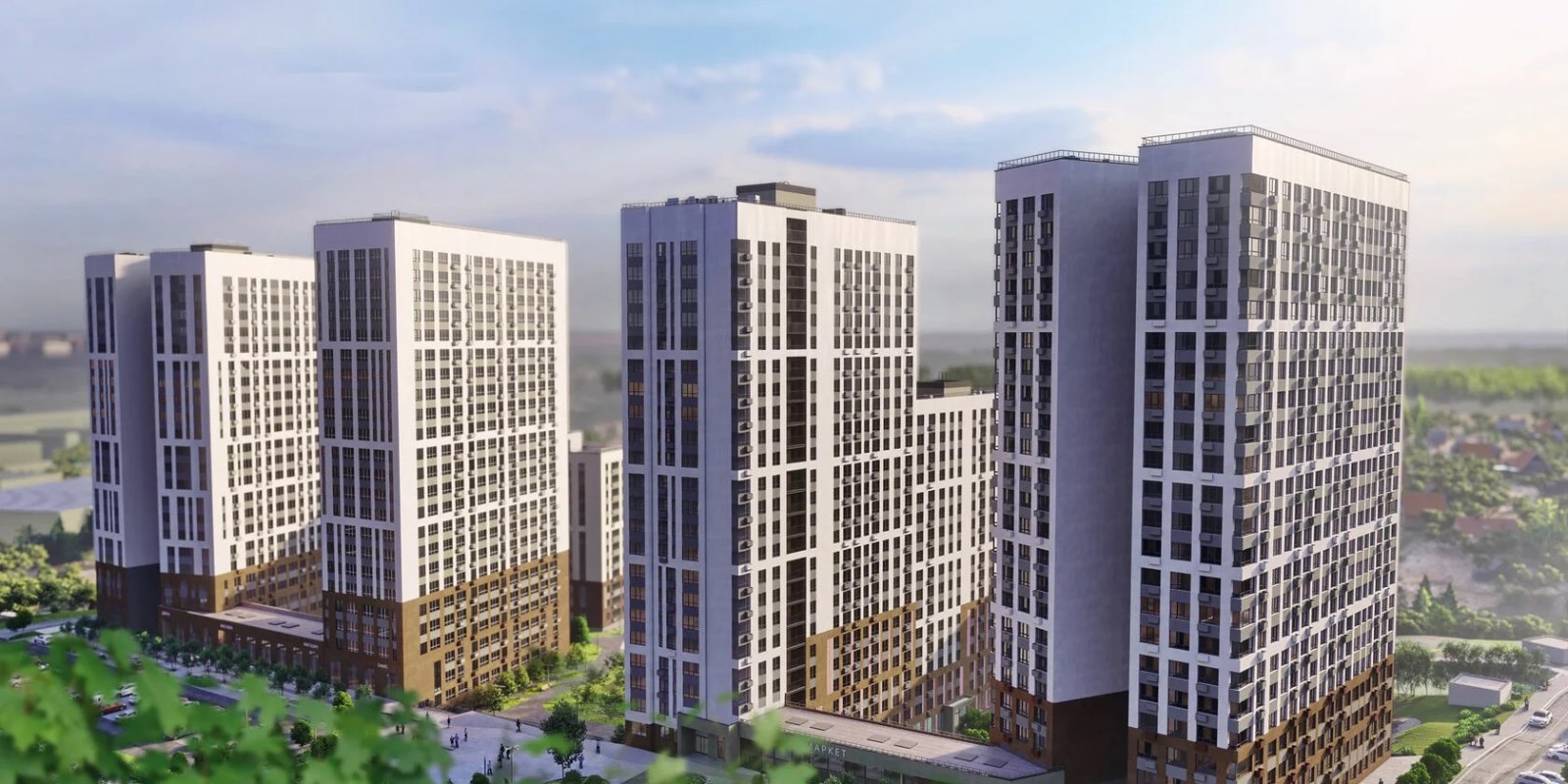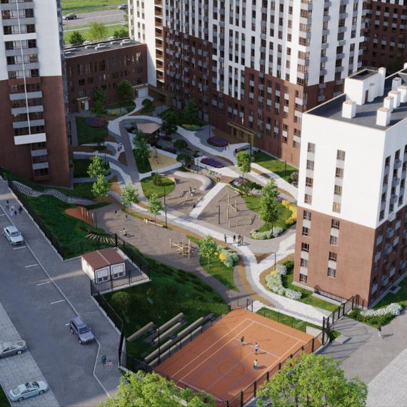 Современные силуэты домов комплекса создают гармоничное цельное пространство и формируют новый облик всего микрорайона. Архитектурную концепцию жилого комплекса мы разработали совместно с крупными архитектурными бюро OSA Group, г. Екатеринбург и MLA+, Нидерланды.