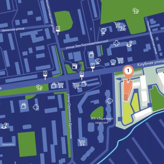 ЖК «Речной парк» расположится на улице Клубной, рядом с ЖК «Заречный квартал», напротив фабрики «Зангари».