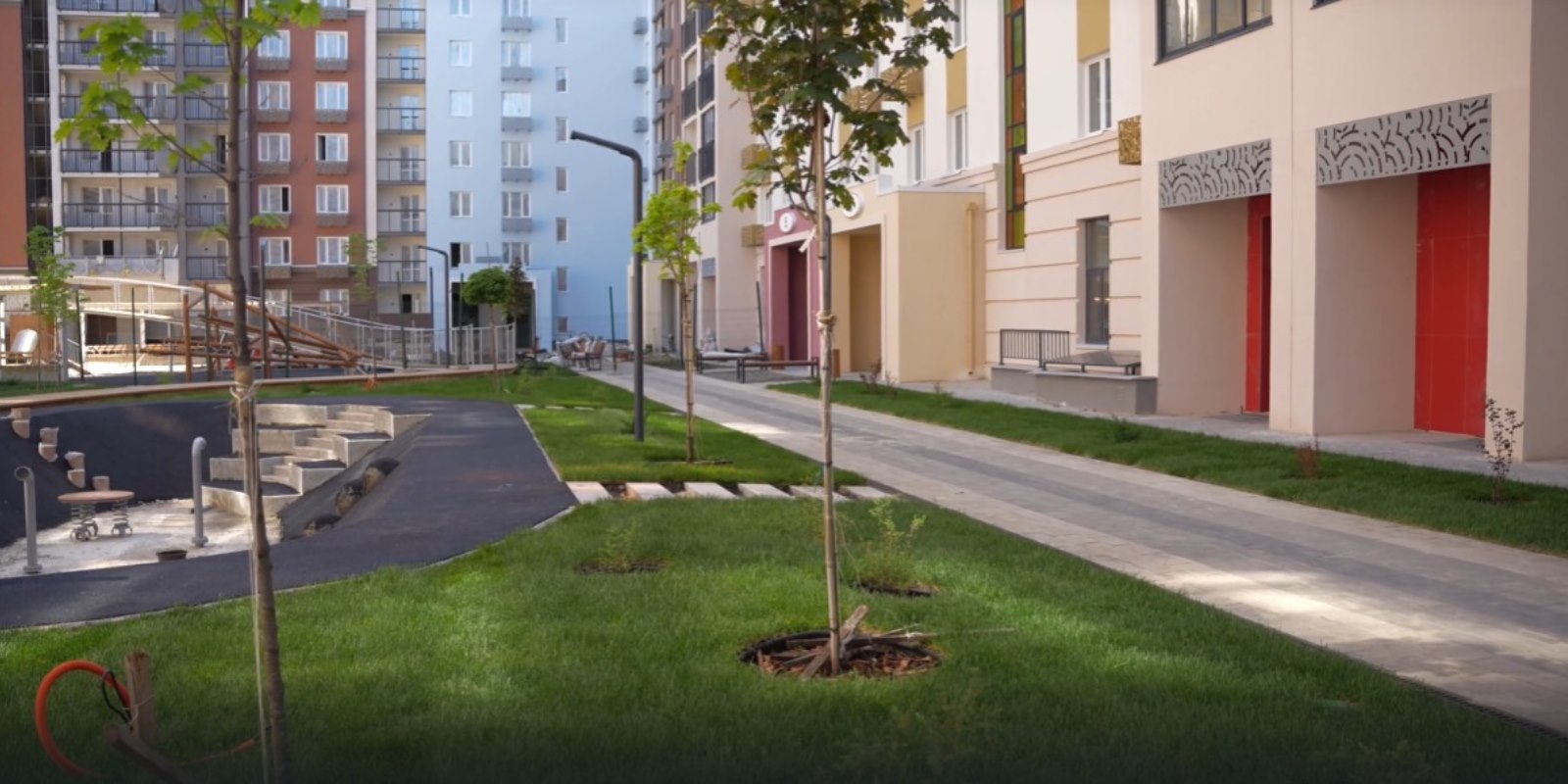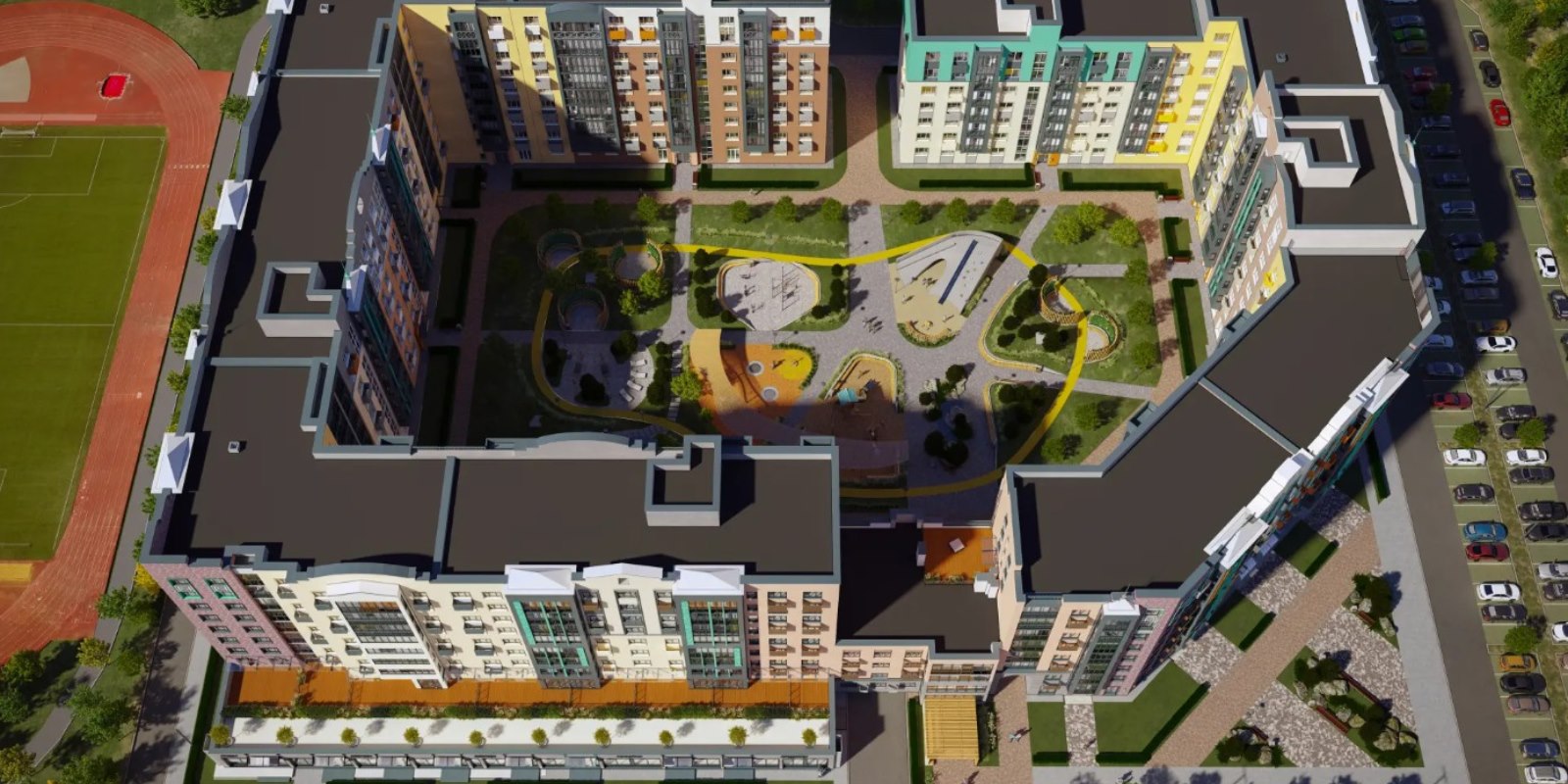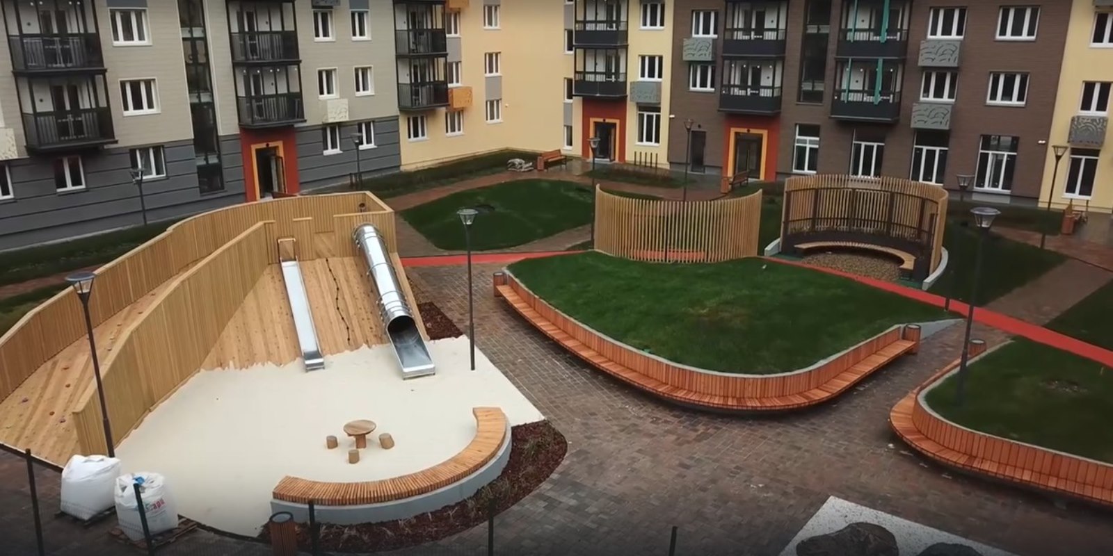 Идея автора благоустройства - это дворы мечты. В основу их формирования мы заложили идею связи и единения с природой. Здесь предусмотрены идеальные сценарии для жизни в окружении зелени: интересный и безопасный досуг на площадках для детей, уютный и приятный отдых для взрослых. Мы сознательно увеличили уровень озеленения, чтобы вы жили в окружении природы и каждый день наслаждались лиственными и хвойными деревьями, кустарниками, цветами и зелёным газоном. Детство маленьких жителей проходит в красоте, так как мы создаём площадки из экологичных и природных материалов. Для безопасности и веселья — устанавливаем специальное покрытие, которое защитит от травм. Во дворе мы размещаем специальные площадки для отдыха жителей, где можно полностью расслабиться и восстановить силы. Дворы жилого комплекса созданы для людей, поэтому парковки для транспорта расположены за его пределами.