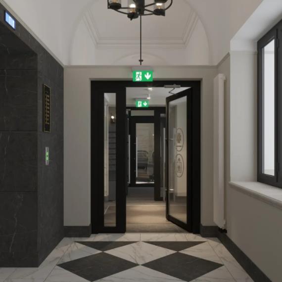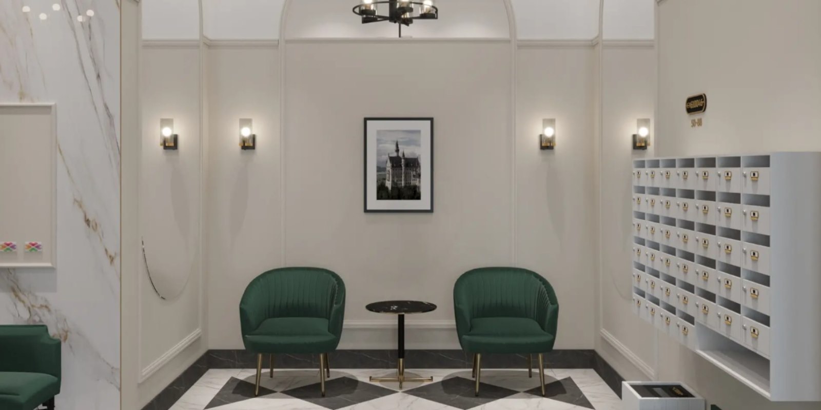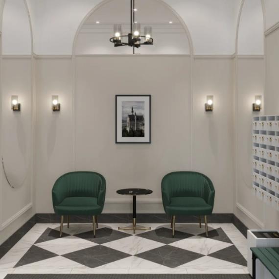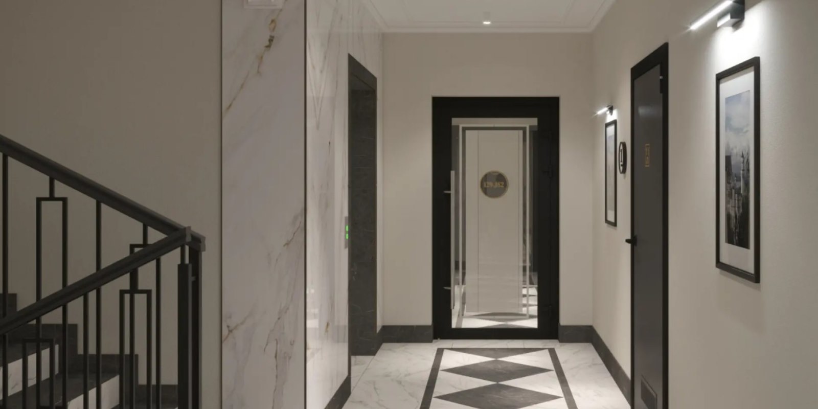 В отделке мест общего пользования мы используем экологичные материалы и природные оттенки. Интерьер подъезда дополняется картинами, мебелью и дизайнерскими элементами.