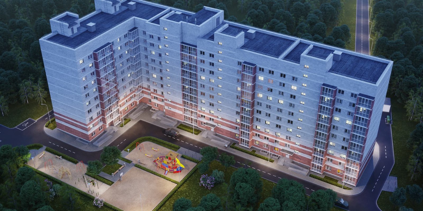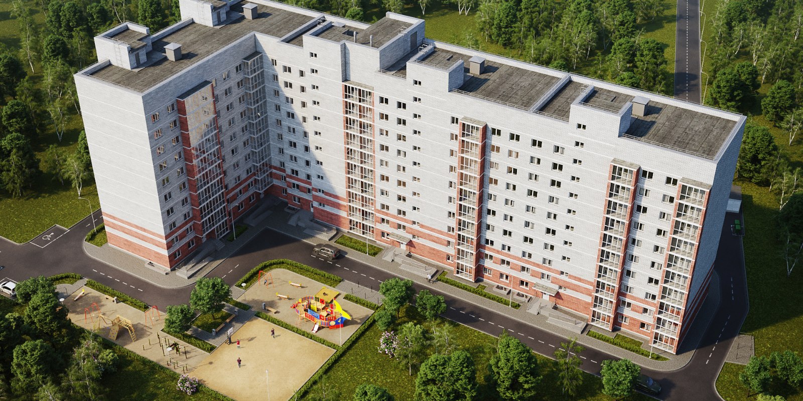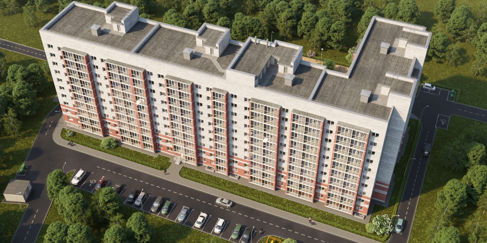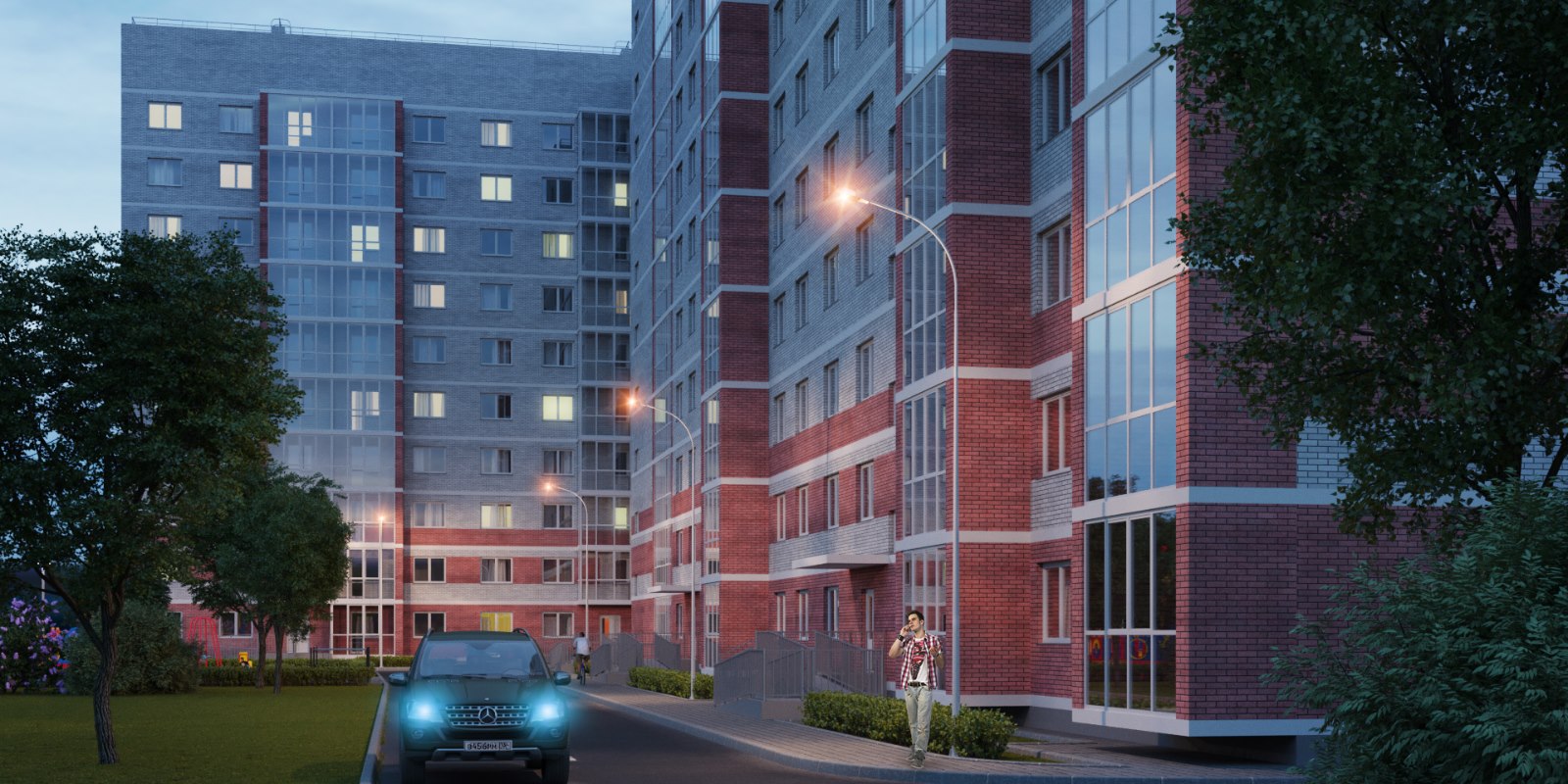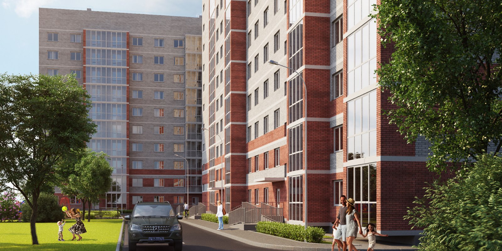 На территории комплекса запланированы детские площадки, зоны для отдыха и занятий воркаутом. Стоянки для транспорта будут расположены за пределами дворов.